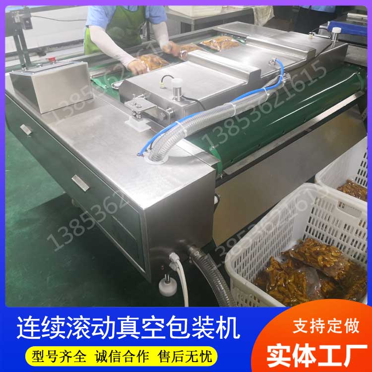 主食加工(粽子、月饼、馒头等)多为季节性批量生产,核心需求是速度包装、防潮保鲜、保证口感,而连续滚动式真空包装机凭借自身优势,适配主食加工的需求,在主食加工中应用广泛,既能实现批量包装,又能牢牢锁住主食的原生口感和新鲜度。以粽子加工为例,粽子旺季加工量巨大,传统包装速度慢、易漏米、保鲜效果差,连续滚动式真空包装机采用连续自动化作业,可实现粽子的批量快速包装,输送带平稳传送,避免粽子挤压变形,热封技术能杜绝漏米、漏汁问题,同时抽除空气形成无氧环境,有效防潮、防氧化,延长粽子保质期,让粽子在储存、运输过程中仍能保持软糯口感和清香风味。再看月饼加工,月饼质地松软、易破碎、易受潮,对包装的度要求高,该机可灵活调节真空度,避免过度抽真空挤压月饼导致破碎,恒温热封技术能牢牢锁住袋口,防止潮气侵入,同时锁住月饼的松软口感和浓郁风味,保证月饼的颜值和品质一致,适配月饼批量加工的标准化需求。对于馒头这类日常主食,其特点是保质期短、易变质,该机的连续作业能力能实现馒头的快速批量包装,低压真空设计避免馒头变形,无氧环境能抑制微生物繁殖,延长馒头保质期,锁住麦香风味和松软口感,同时节省人工成本,适配馒头加工厂的规模化生产需求。此外,该机还可用于包子、汤圆等主食包装,适配性强,操作简单、易清洁,符合主食加工的卫生要求,既能提升生产效率,又能保障主食品质,成为主食加工企业的得力助手。